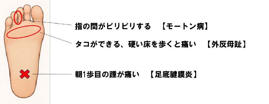 ・長く歩くと足裏や他の指にも痛みやタコ・ウオノメが出てくる